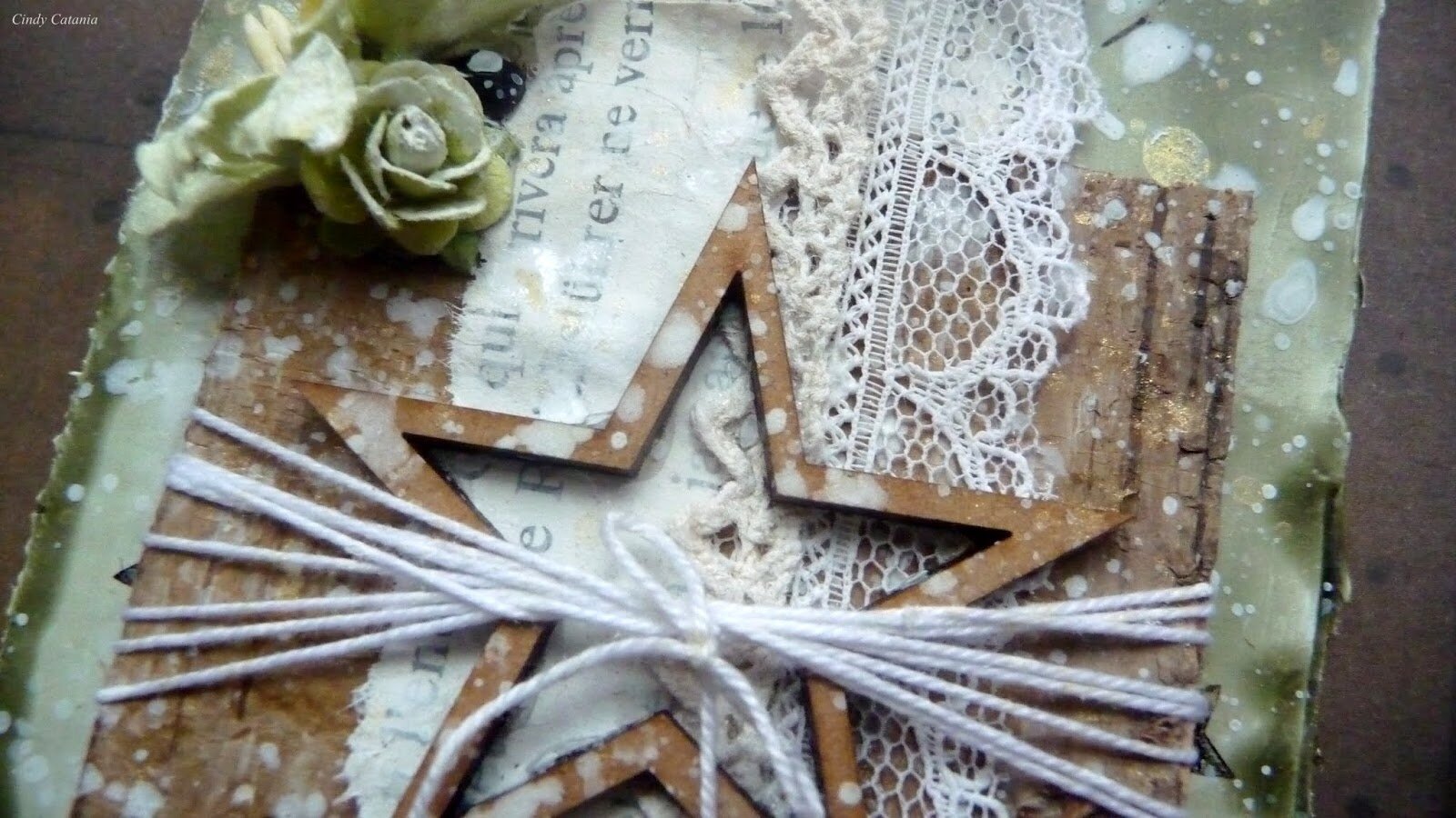 Je me suis donc inspirée des couleurs, du papier livre, du bois et de la fleurs et pour mon fond vert je me suis inspirés d'un tuto de Marta Turska-Grochocka qui consiste a mélanger colle et couleur ensemble puis d'y étaler pour un effet irisé que j'adore....